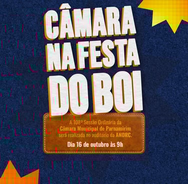 Nesta quinta-feira (16), a 108° Sessão Ordinária da Câmara de Parnamirim vai acontecer no auditório da Anorc, no Parque Aristófanes Fernandes. Esta será uma sessão especial que vai ocorrer dentro da programação oficial da 63° Festa do Boi, e terá início a partir das 9h, com a participação de todos os vereadores parnamirinenses.