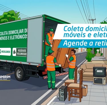 A Prefeitura de Parnamirim disponibiliza à população um serviço de coleta de eletrônicos, eletrodomésticos e móveis nas residências, através de agendamento. A iniciativa facilita o descarte correto de materiais grandes e inutilizados, contribuindo para a limpeza urbana e para a preservação do meio ambiente.