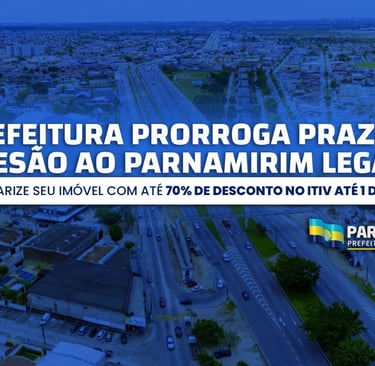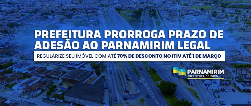 A Prefeitura de Parnamirim prorrogou até o dia 1º de março o prazo para adesão ao Parnamirim Legal, programa que ajuda moradores a regularizar imóveis que ainda não estão no nome do atual proprietário. A iniciativa oferece até 70% de desconto no Imposto de Transferência de Bens Imóveis (ITIV), além da opção de parcelar a parte municipal em até 12 vezes no cartão.
