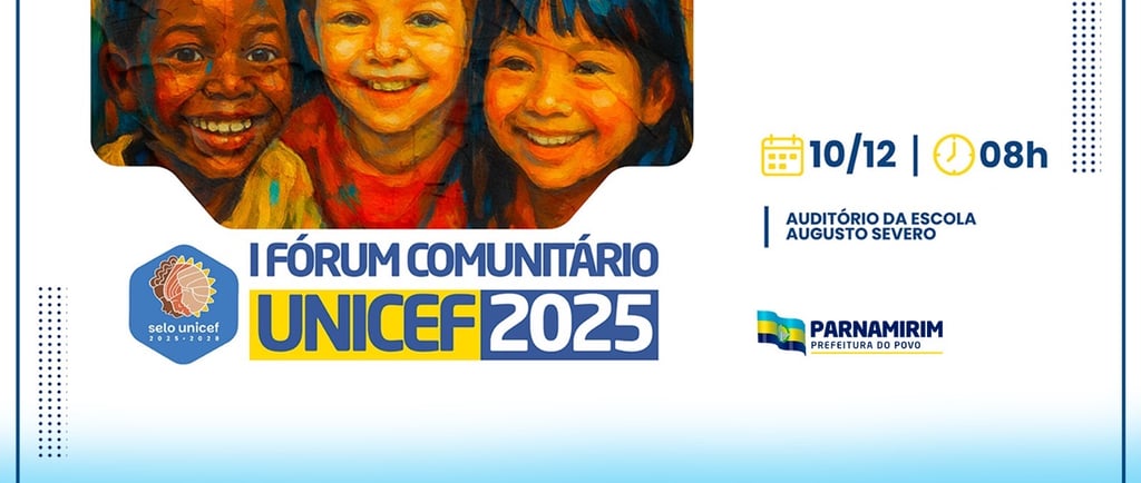 A Prefeitura de Parnamirim, por meio da Comissão Intersetorial do Selo UNICEF e do Conselho Municipal dos Direitos da Criança e do Adolescente (Comdica), realizou na quarta-feira (10), no Auditório da Escola Municipal Augusto Severo, o I Fórum Comunitário UNICEF 2025-2028.