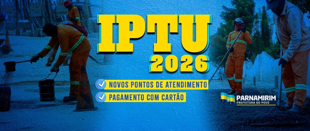 Os atendimentos presenciais ocorrerão das 8h às 14h nos bairros Santos Reis, Nova Parnamirim, Cidade Verde e Pirangi do Norte. Além disso, os contribuintes podem emitir seus boletos pelo site parnamirim.rn.gov.br. Haverá desconto exclusivo para contribuintes adimplentes, tanto na emissão eletrônica do boleto quanto no pagamento em cota única.