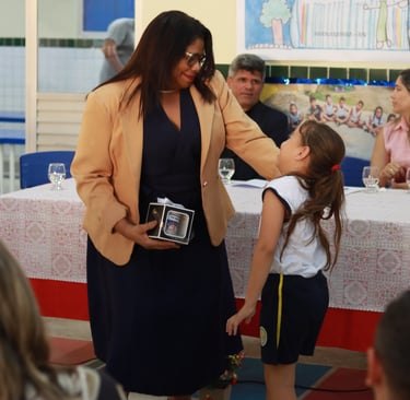 Após o depoimento e a emocionante apresentação da aluna Maria Júlia, que cantou “O Maior Pintor do Mundo”, do Pr. Lucas, foi realizado o tão esperado descerramento da placa, que contou com a presença da secretária de Educação, Eliza Toscano; secretários municipais, vereadores, gestores do CMEI e as crianças do Centro Infantil. A intervenção reforça o compromisso da atual gestão com a oferta de ensino de qualidade e com melhores condições de trabalho e aprendizagem.