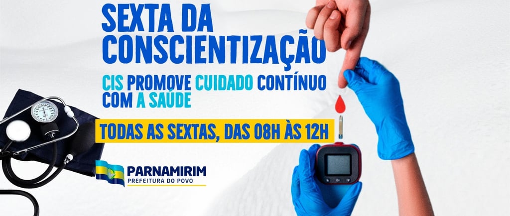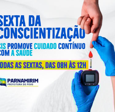 A Prefeitura de Parnamirim, por meio da Secretaria Municipal de Saúde (Sesad) e o Centro Integrado de Saúde (CIS) realizará todas as sextas-feiras das 8h às 12h a Sexta da Conscientização, com o objetivo de orientar sobre o uso do kit de glicose e demais cuidados com a saúde.